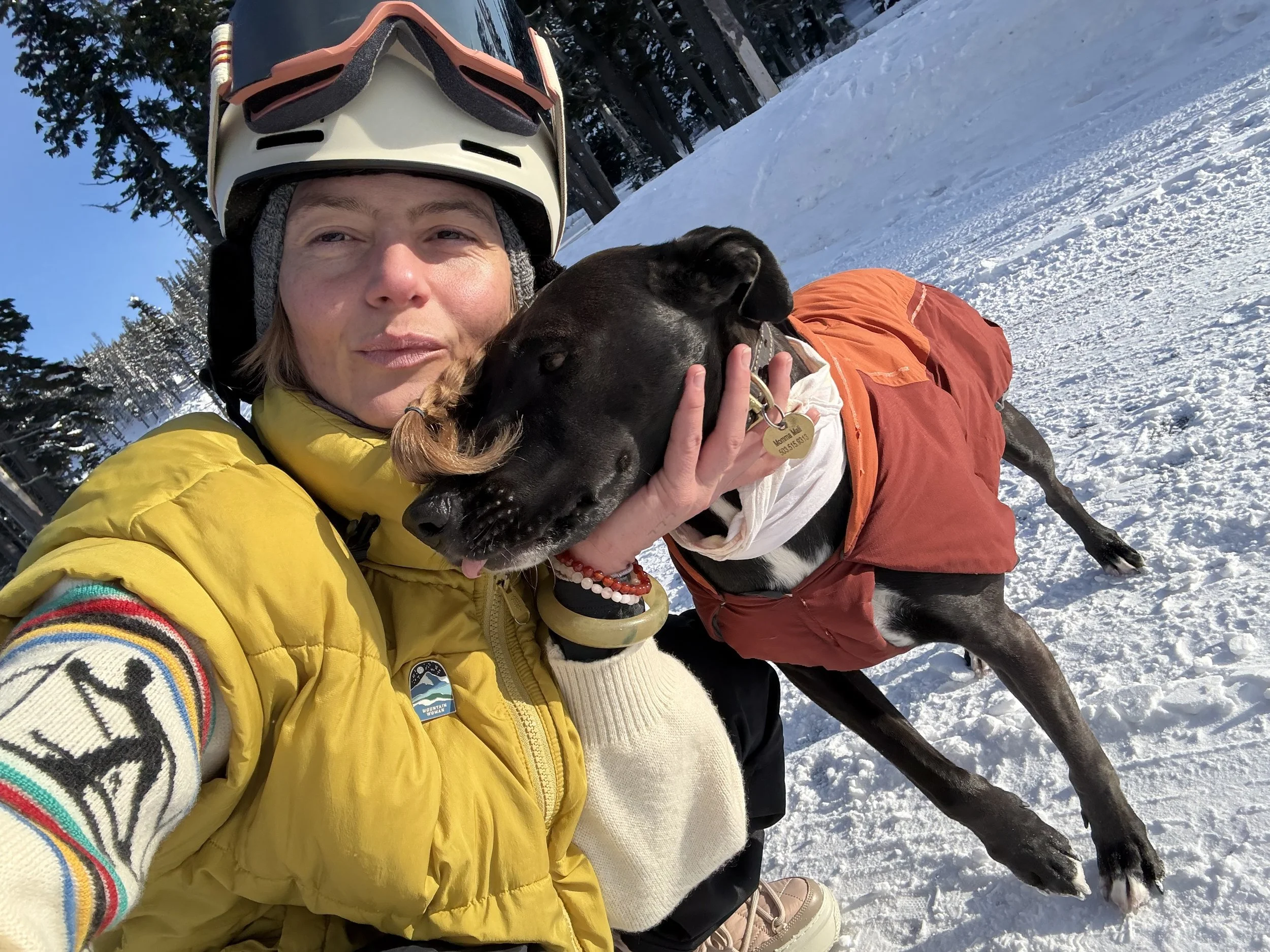 Gear on, Chiquita snuggled tight, coffee down, bluebird skis in sight.