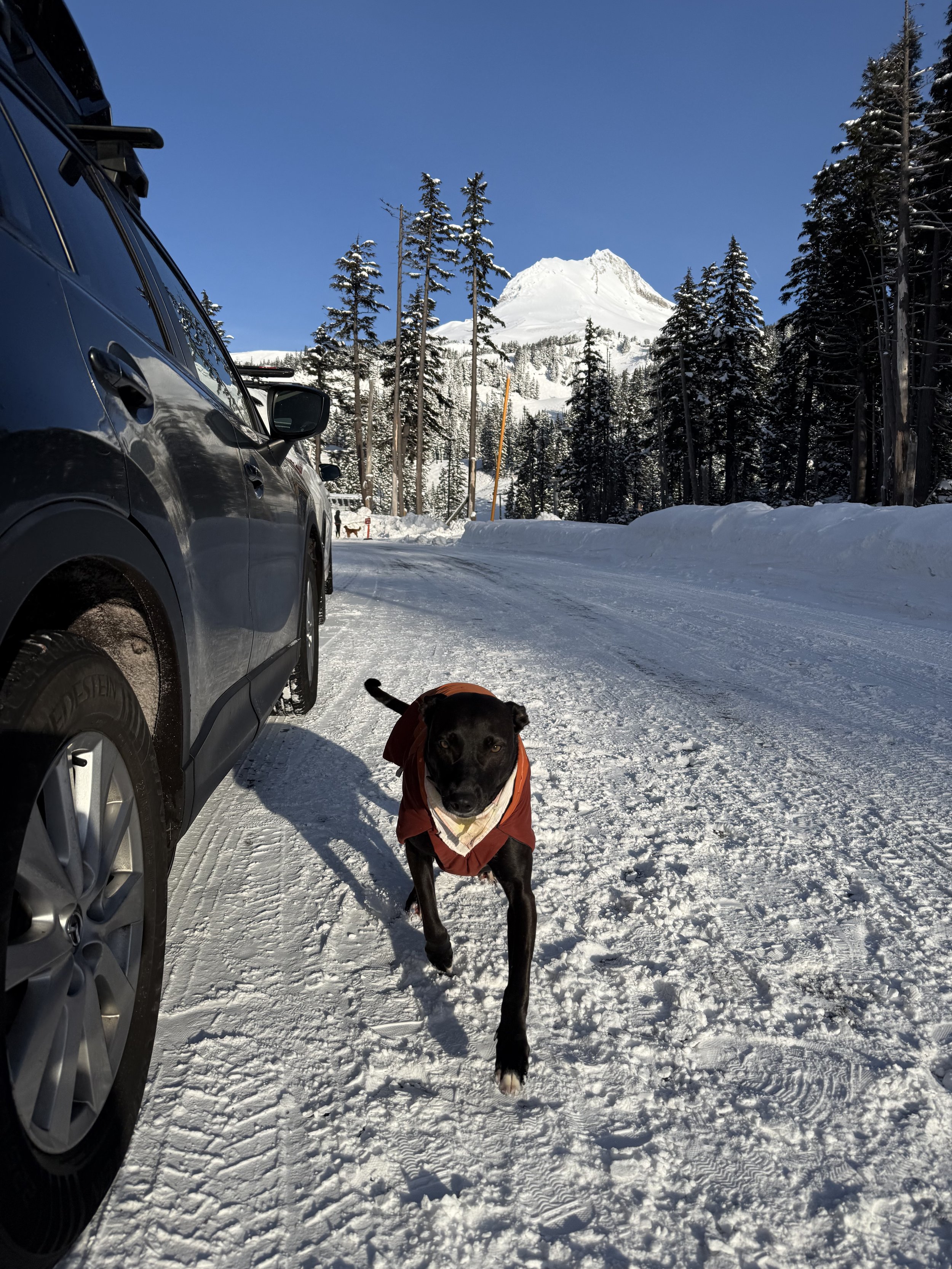 Arriving right on time— fifth row parking, a skier’s delight.